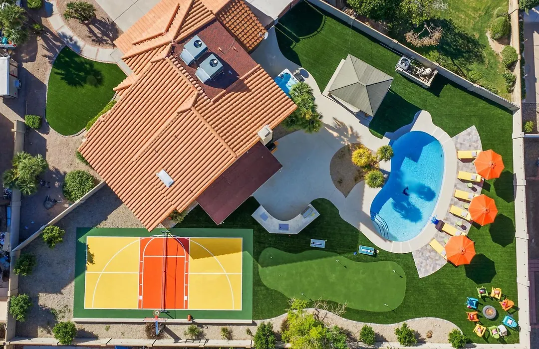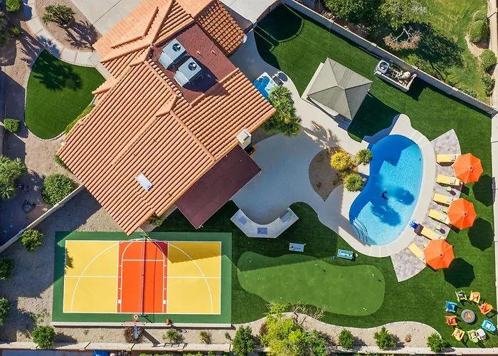 Sleeps 16 Sport Court Heated Pool Putt Putt Villa has an equipped kitchen with coffee and tea making facilities, a fridge, and a kitchenware for comfortable stay. This Sun City accommodation is within reach of China Grill On Thunderbird Rd offering dishes of chinesisch cuisine. Guests can have a refreshing swim in a private swimming pool or experience relaxation in a spa centre.